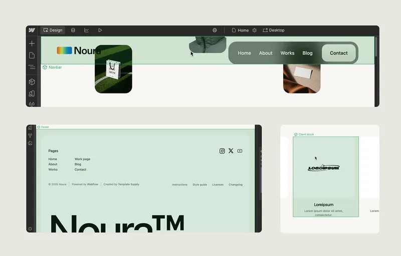 Noura is a modern Webflow template designed for creative agencies and independent designers.